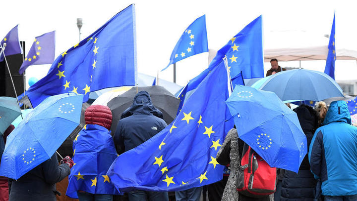 Bürger protestieren in Berlin bei der Demonstration von Pulse of Europe für ein vereintes Europa. (Foto: dpa) Foto: Maurizio Gambarini