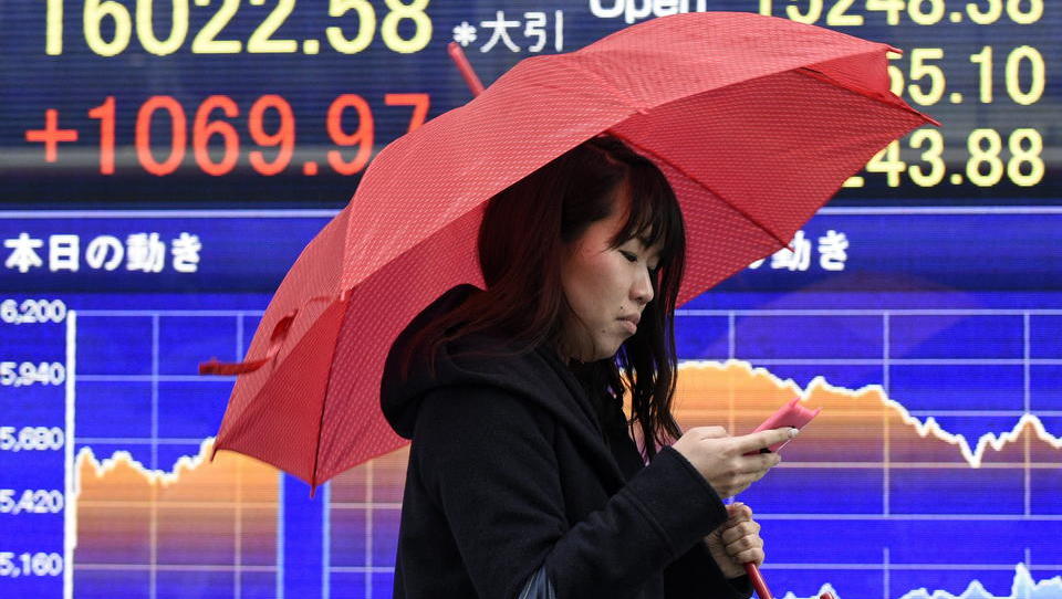 Eine Tokioterin vor Börsenkursen. (Foto: dpa) Foto: Franck Robichon