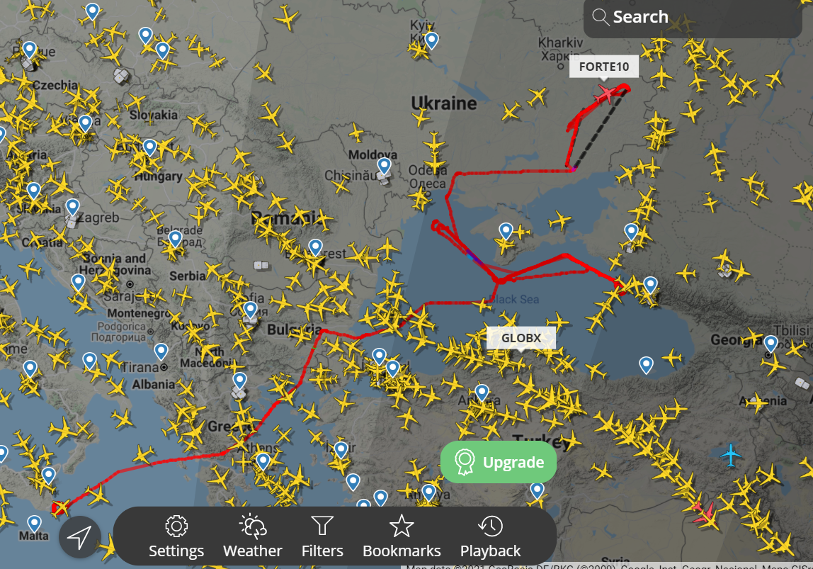 Ein US-Militär-Transportflugzeug der Klasse Lockheed Martin C-130J (HKY799) wurde über der Ukraine gesichtet. Das Militärflugzeug startete von der „Ramstein Air Base“ in Deutschland. Aktuell befindet sich die Maschine in der Nähe der Stadt Lviv. Weiterhin wurde eine US-amerikanische Langstrecken-Aufklärungsdrohne des Typs „RQ-4 Global Hawk“ mit der Registrierungsnnummer 11-2049 in der Ukraine gesichtet. Die Drohne startete in Italien, flog über Griechenland, Bulgarien und das Schwarze Meer in die Ukraine. Sie fliegt aktuell zwischen der Stadt Starobilsk, die sich in der Nähe der Kontaktlinie zu den Rebellengebieten befindet, und der Stadt Slovyansk hin und her.