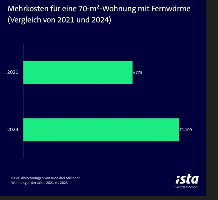 Besonders Fernwärmekunden müssen derzeit tief in die Tasche greifen, zeigt die ista-Berechnung: In vielen Fällen stiegen die Kosten um mehr als ein Viertel. Für eine 70-Quadratmeter-Wohnung summierten sich Heizung und Warmwasser im Jahr 2024 auf durchschnittlich 1.055 Euro, das sind rund 225 Euro mehr als im Vorjahr. „Viele Menschen haben fälschlicherweise den Eindruck, dass sich die Lage an den Energiemärkten entspannt hat. Dieser Eindruck trügt, wie die Analyse unserer Daten zeigt“, warnt ista-CEO Hagen Lessing. Vor allem der Wegfall der Energiepreisbremsen und die Rückkehr zum vollen Mehrwertsteuersatz hätten die Preise für Fernwärme stark ansteigen lassen.