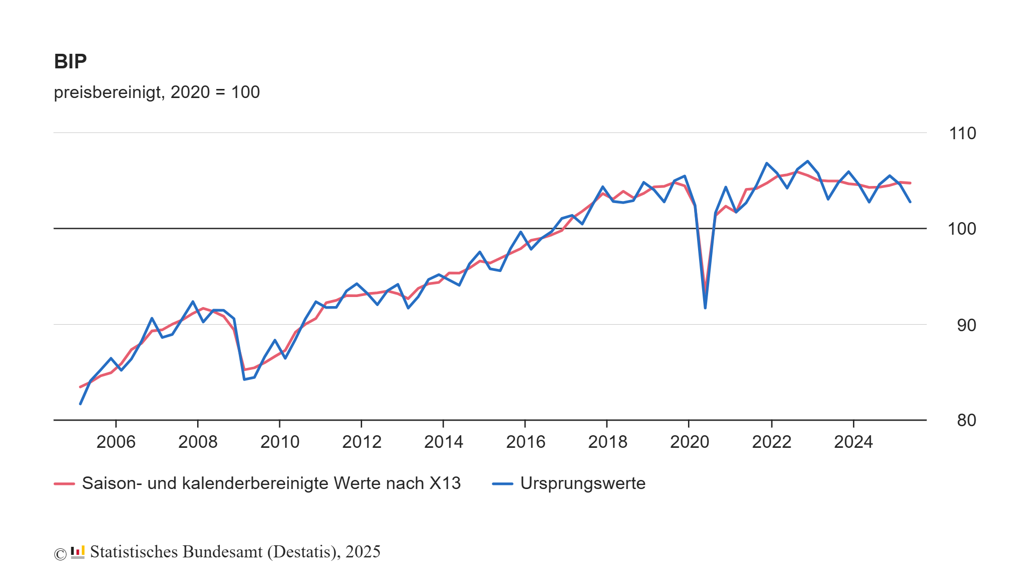 Das Wirtschaftswachstum ist im zweiten Quartal wieder zurückgegangen. Von April bis Juni schrumpfte das Bruttoinlandsprodukt (BIP) um 0,1 Prozent im Vergleich zum Vorquartal, wie das Statistische Bundesamt am 30. Juli mitteilte.