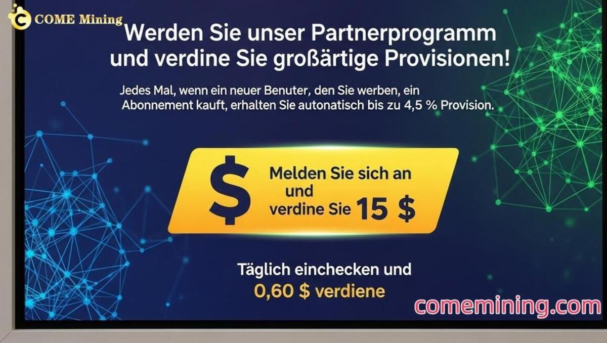 Besuchen Sie comemining.com, registrieren Sie sich schnell mit Ihrer E-Mail-Adresse und melden Sie sich in Ihrem Dashboard an, um sofort mit dem Mining zu beginnen.