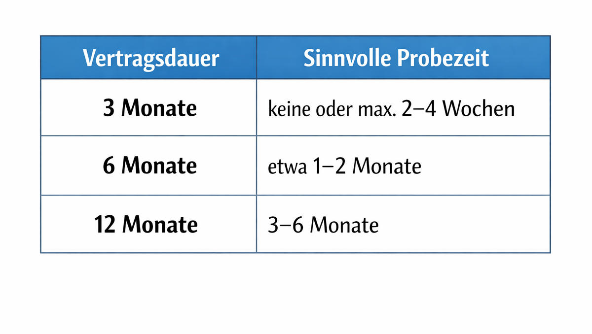 Eine starre Grenze für die Länge der Probezeit nennt das BAG nicht. Entscheidend ist das Verhältnis zwischen Befristung und Probezeit. Für Unternehmen bedeutet das vor allem: Bei kurzen befristeten Verträgen sollten Probezeiten nicht zu lang angesetzt werden. Andernfalls kann die Klausel unwirksam sein.
